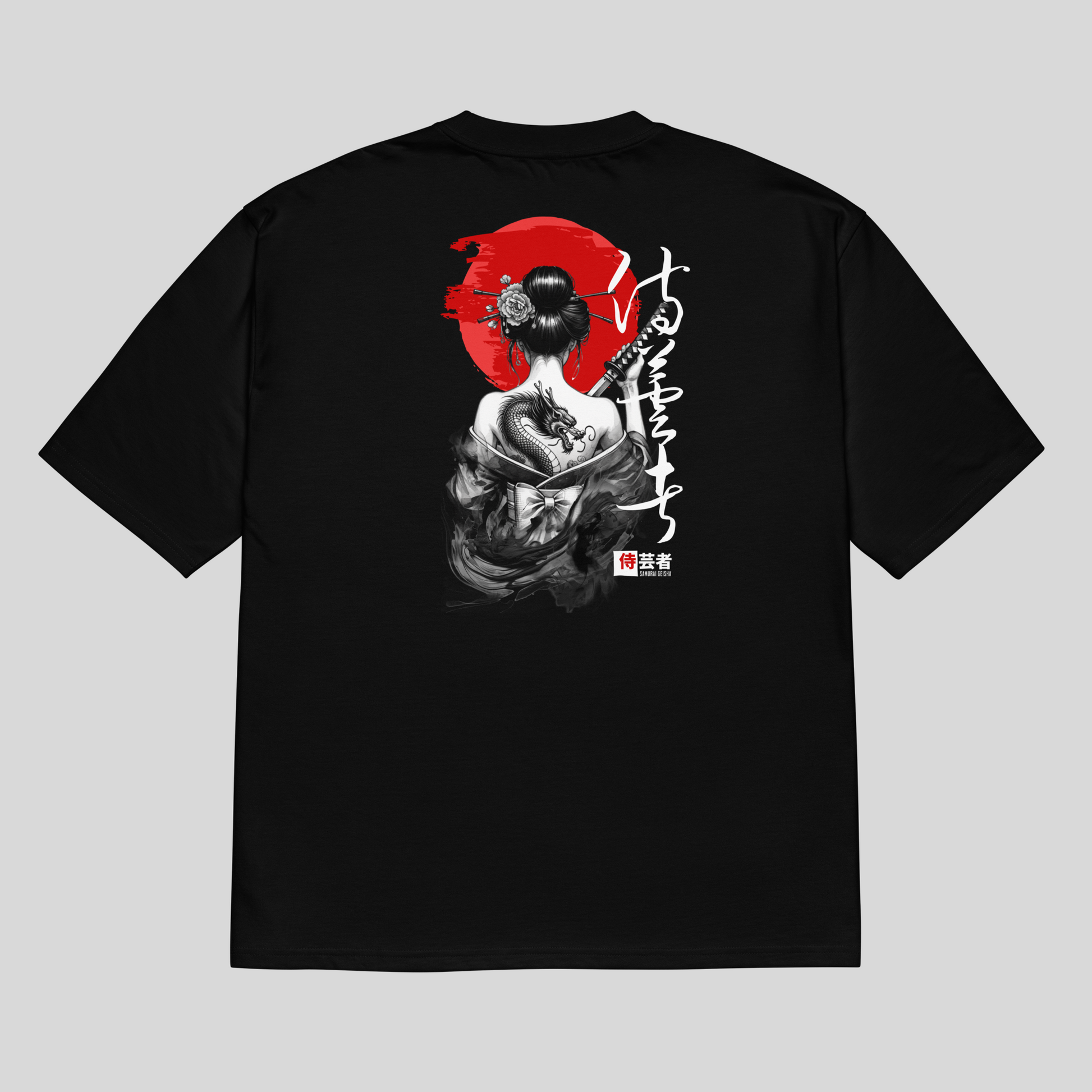 Soft but savage- This tee’s for the ones who know how to keep it graceful while packing a serious punch. Rock an inked geisha standing tall against the rising sun, with a fierce dragon wrapped like a secret weapon on her back. It’s proof that elegance isn’t weakness—it’s power disguised in silk and fire. Wear this if your vibe’s chill on the outside but ready to snap back hard when tested.